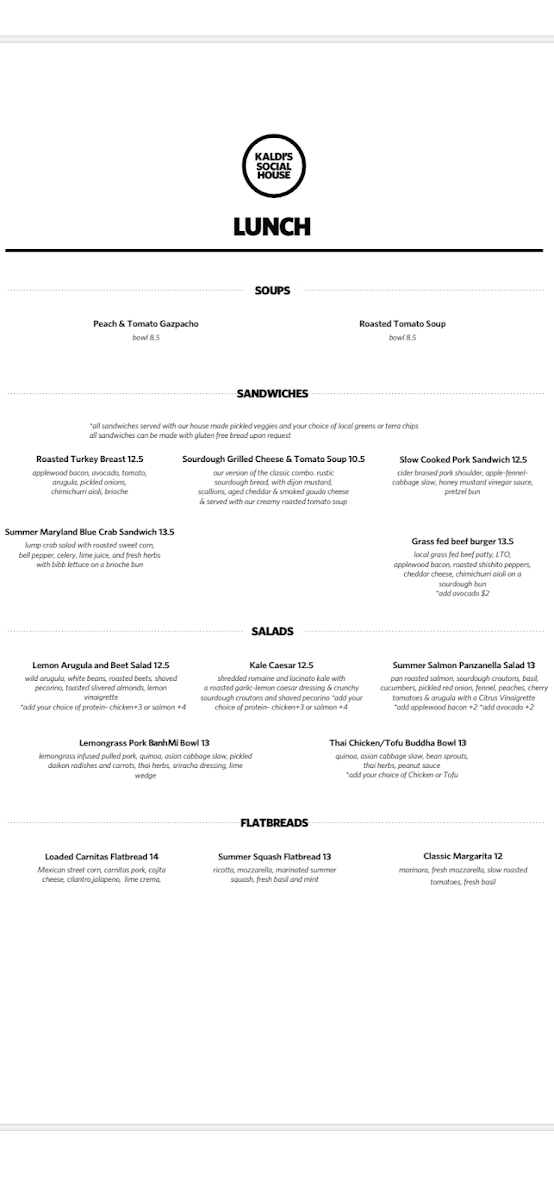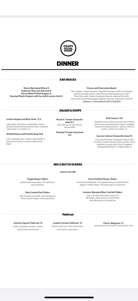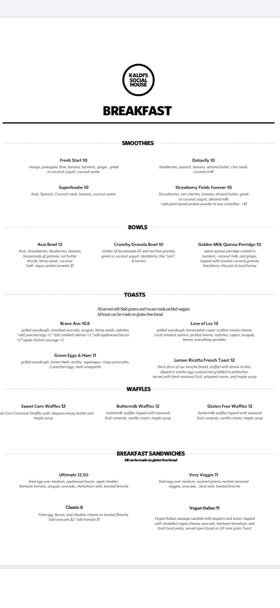 At Kaldi's Social House, we pride ourselves on offering a menu that blends comfort with creativity. Whether you’re stopping by for a quick bite or settling in for a leisurely meal, there’s something here to satisfy every craving. The Kaldi's Social House Menu features a variety of dishes that celebrate fresh, high-quality ingredients. From hearty breakfast options to delicious lunch and dinner plates, each dish is crafted to bring a smile to your face.